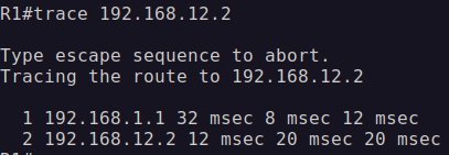 En este caso, al repetir el análisis de la ruta entre el router R1 y R4 se pueden encontrar diferencias significativas. Por ejemplo, si se usa la interfaz f1/0 de R4 (192.168.12.2) directamente conectada al router R5, el protocolo de enrutamiento encuentra una vía alternativa a través de la interfaz f0/0, conectada a R2. Así, el mensaje puede llegar a su destino atravesando R2 en vez de R5.