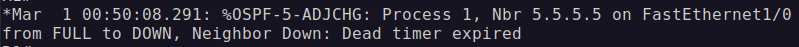 En este caso, si se apaga uno de los routers del escenario, por ejemplo el router R5, todo el resto de dispositivos de la red recibe, poco segundos después, esta información: